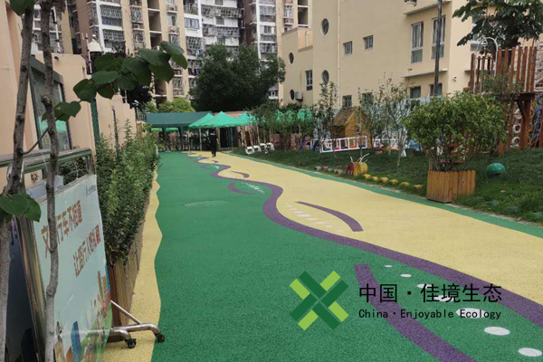 海綿城市建設讓透水混凝土鋪裝逐漸走進了人們的視野,彩色透水混凝土無毒無味,可以避免塑膠顆粒地面帶來的不確定性!幼兒園活動廣場使用透水混凝土也減少了雨后積水問題,給校園更加整潔的環境;彩色透水混凝土有很強的裝飾性,為校園地面以及整體的提升亮化提供了方案。